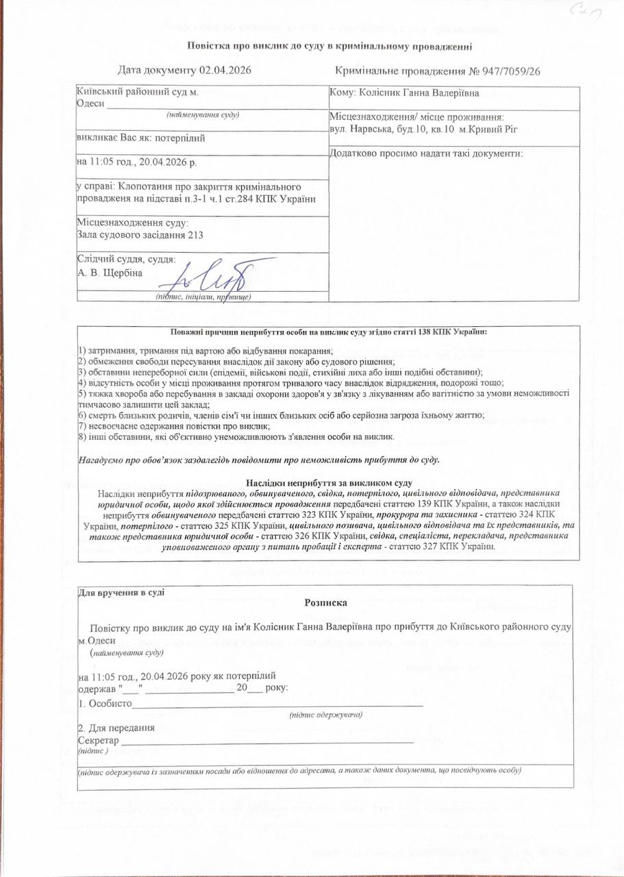 Оголошення про виклик особи в суд та повідомлення про судове рішення