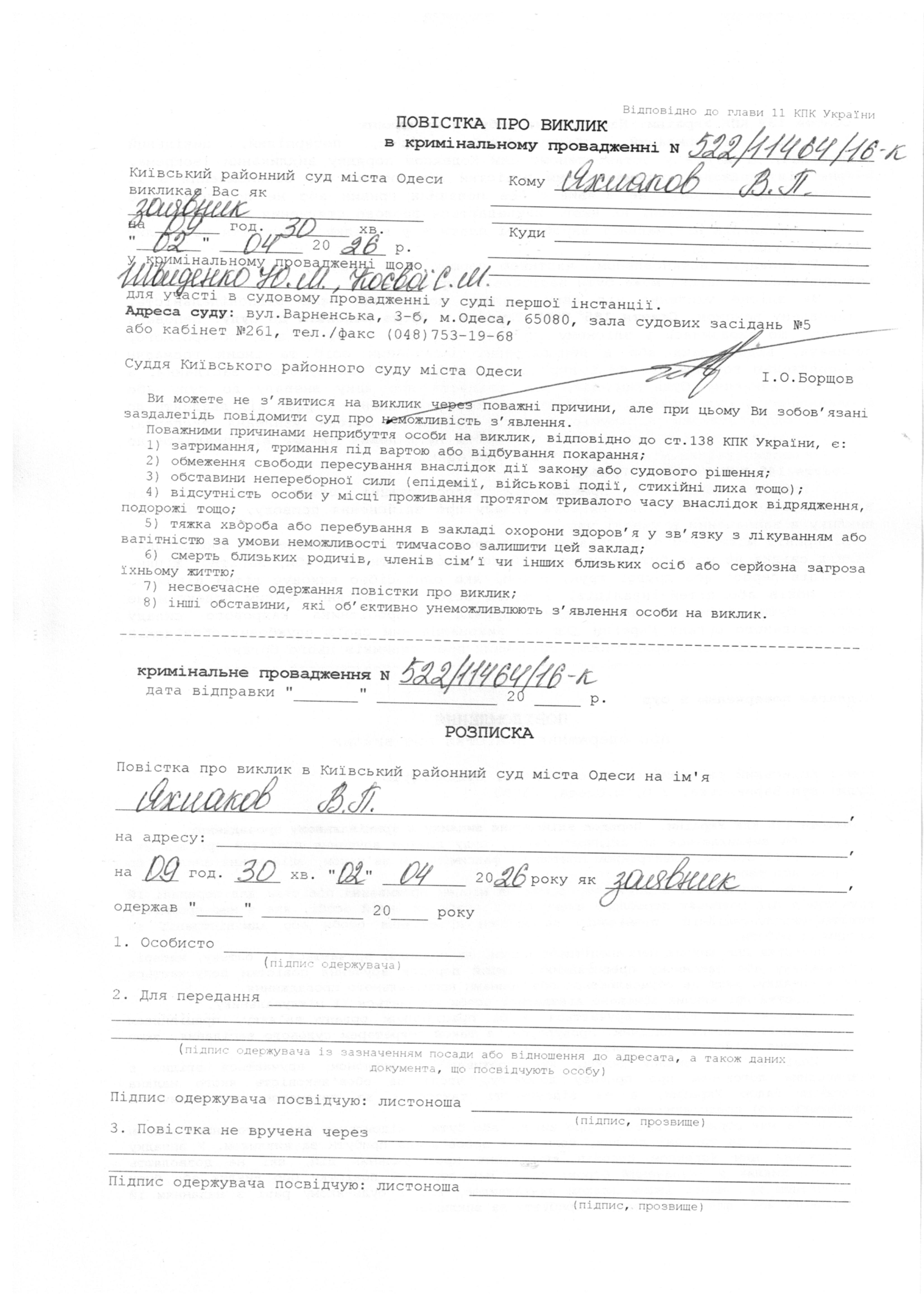 Оголошення про виклик особи в суд та повідомлення про судове рішення