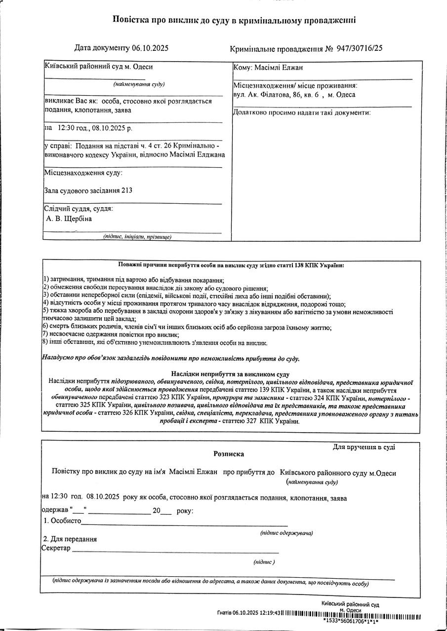 Оголошення про виклик особи в суд та повідомлення про судове рішення