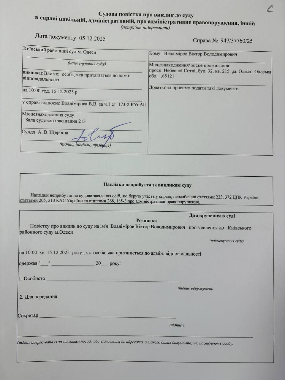 Оголошення про виклик особи в суд та повідомлення про судове рішення