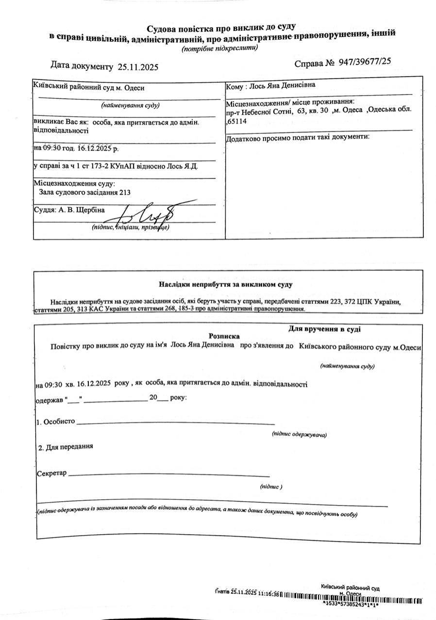 Оголошення про виклик особи в суд та повідомлення про судове рішення