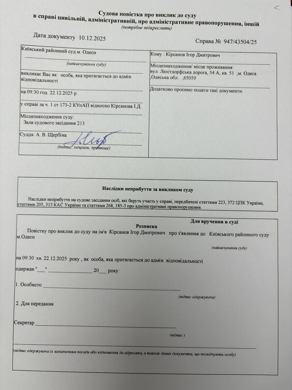 Оголошення про виклик особи в суд та повідомлення про судове рішення