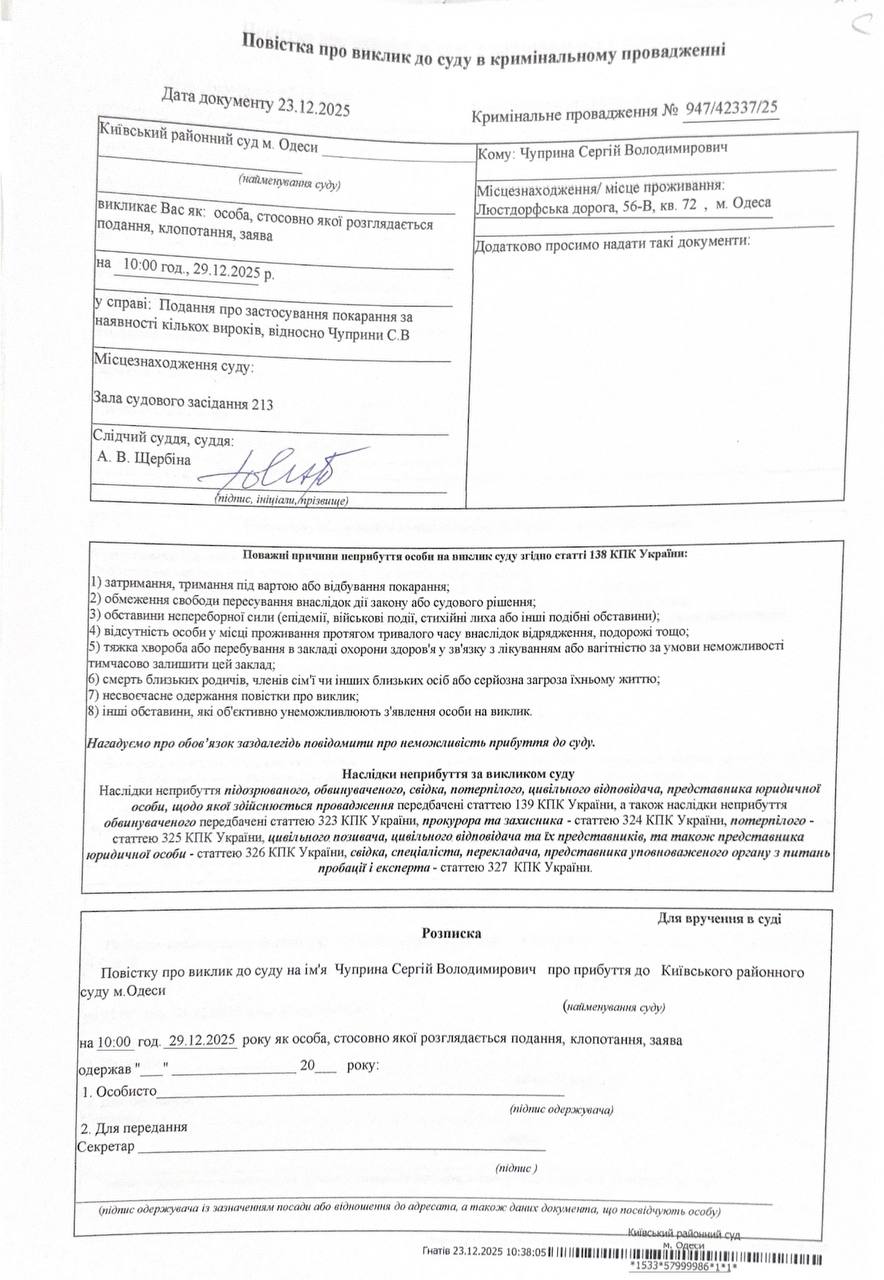 Оголошення про виклик особи в суд та повідомлення про судове рішення