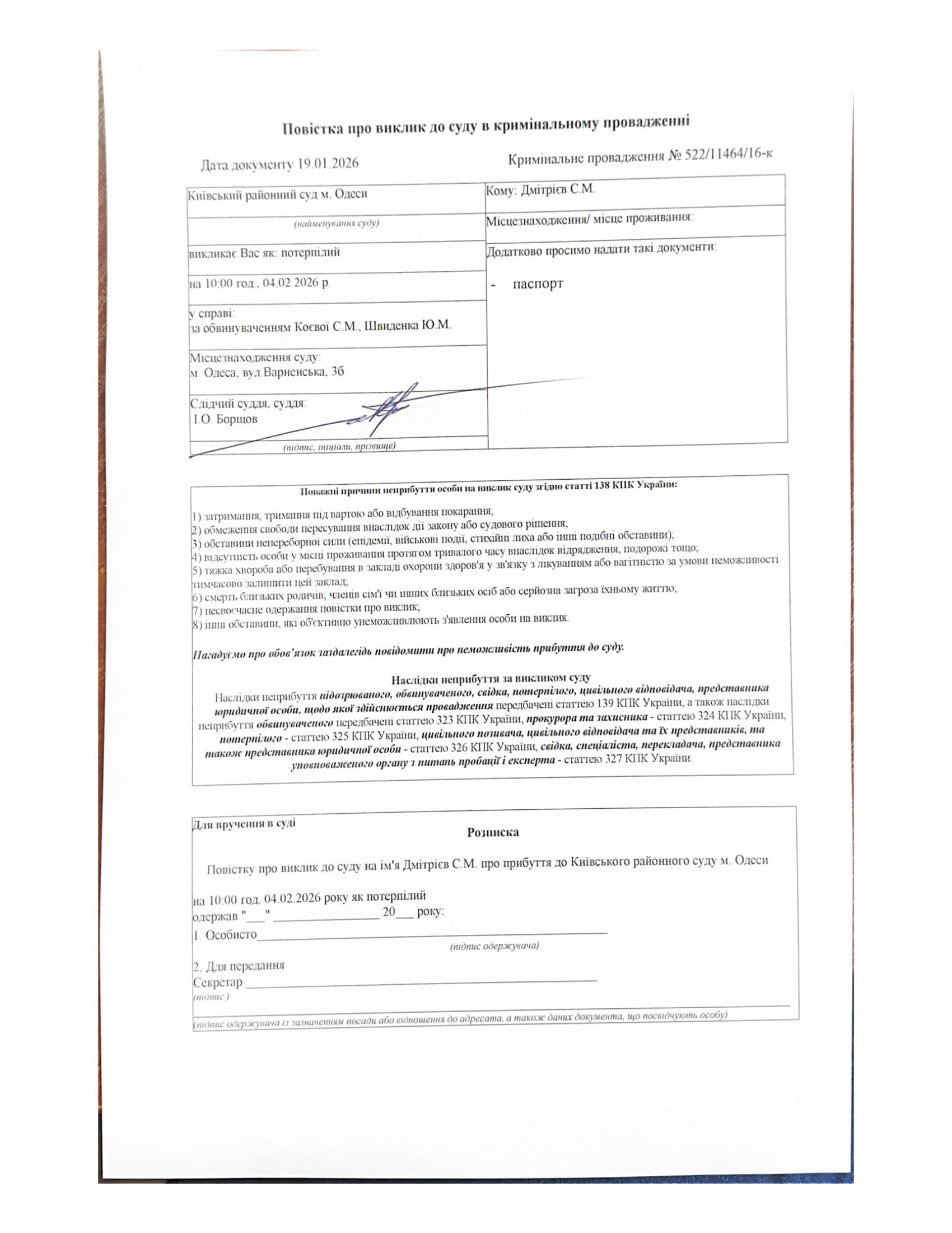 Оголошення про виклик особи в суд та повідомлення про судове рішення